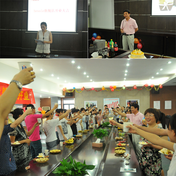 在同事們熱烈的掌聲中,集團(tuán)總經(jīng)理徐渙渙女士作開業(yè)致辭,并就創(chuàng)立hessie的初衷作了簡單闡述:來源就是自己的親身經(jīng)歷,當(dāng)了媽媽后,我總希望給我孩子的一切都是最好的,我也相信每一位母親都和我一樣,特別重視對嬰兒用品的選擇,務(wù)求給自己寶寶的是最好的。我們hessie旗艦店就是基于這個初衷,旨在給媽媽一個放心的保證,以寶寶的安全舒適為第一位。
