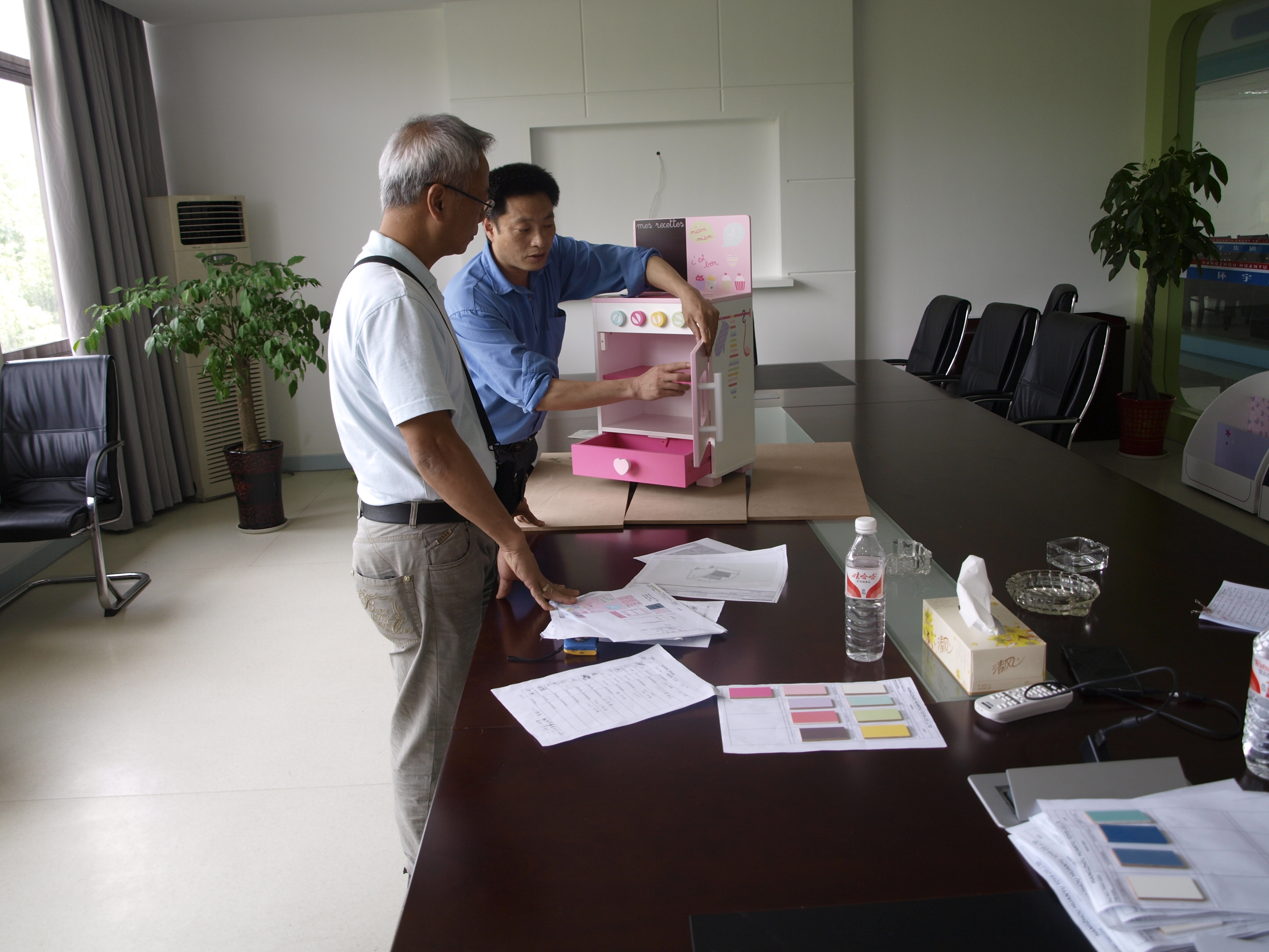 昨日上午,法國客戶公司QA,Orlando在我公司QC部王亮,營銷部周喬芳的陪同下,對SS15季度包括四輪書柜,衣架,雜志架,櫥柜等幾款VB新產(chǎn)品進行檢驗審核,這也是下半年客戶公司下訂單的前期工作之一。
