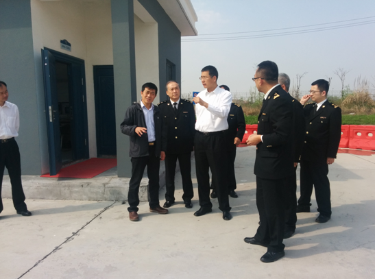 2015年4月1日上午,杭州海關(guān)副關(guān)長田德明一行來訪,視察浙江富陽口岸國際物流有限公司搬遷至東洲碼頭的建設(shè)搬遷情況。杭州海關(guān)富陽辦事處牟光明主任、丁士龍副主任、袁霄衛(wèi)科長陪同調(diào)研,環(huán)宇集團(tuán)徐林軍董事長等陪同接待。田副關(guān)長認(rèn)真詢問了目前富陽口岸的搬遷情況,隨后視察了海關(guān)監(jiān)管場、海關(guān)查驗(yàn)設(shè)施等,并對口岸相關(guān)工作給予指導(dǎo)。